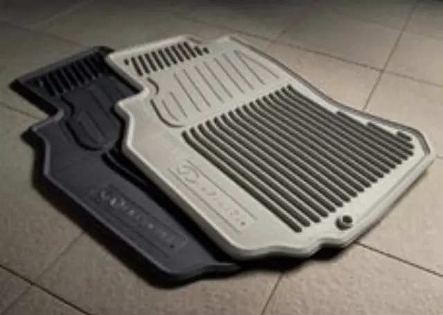 Help protect your vehicles carpeting. Deep-ribbed channels trap dirt- mud- snow and water. Drivers mat features a grommet/hook retention system. Available in beige- black and gray colors with automatic and manual transmission. Set of 4. No logo.